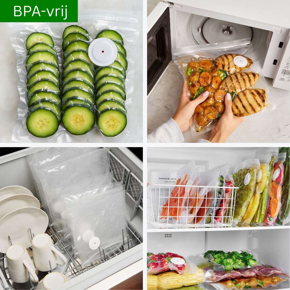 Ja. De vacuümzakken zijn BPA-vrij en geschikt voor koelkast, vriezer en magnetron. Ze geven geen geur, smaak of stoffen af aan je eten.